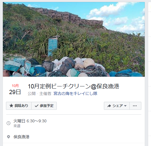 宮古島にお住いのアグへ連絡します。10月29日 保良漁港を清掃する予定みたいです。時間のあるかたはふるってご参加ください。よろしくお願いします。内地に住んでいるアグより