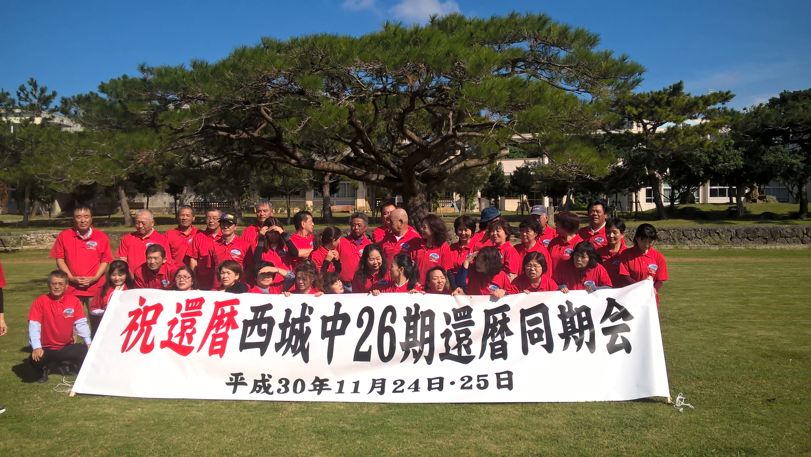 24日 午後より小学校校舎に集まり記念撮影をしました。18:00より還暦の懇親会を盛大に行いました。