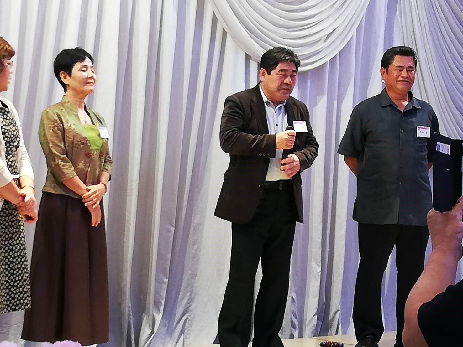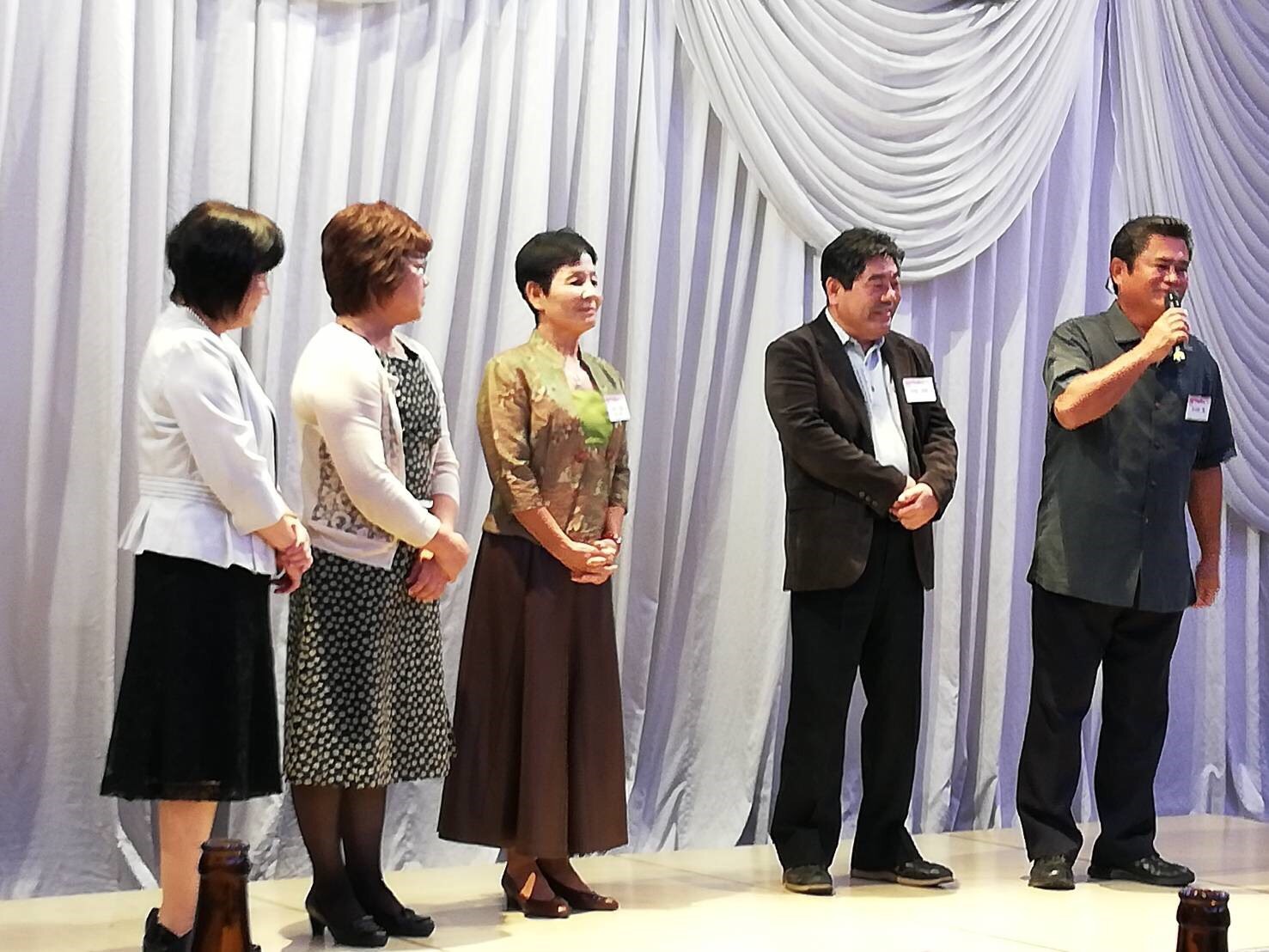 長南部落です。(5名)    長中部落です。(13名) 長北部落です。(10名) 総合司会です。(孝一と久登)