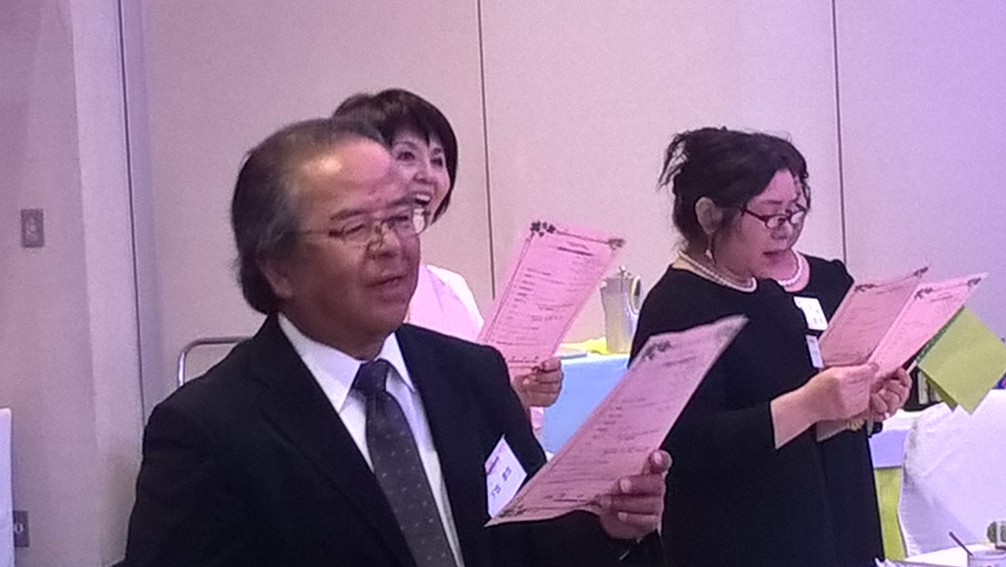 最初は皆さんで小学校の校歌を歌いました。